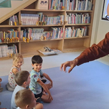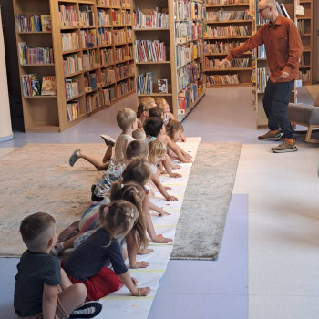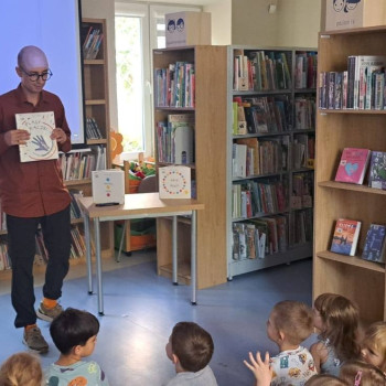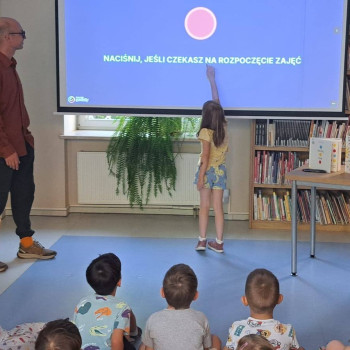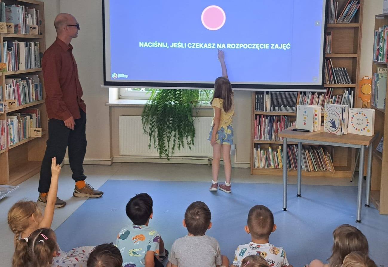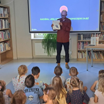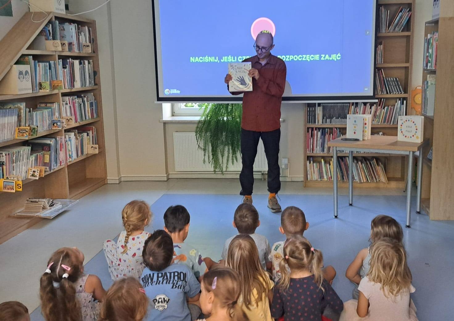 7września dzieci z grupy III ,,Biedronki " odwiedziły Bibliotekę dla Dzieci i Młodzieży przy ul. Skoczylasa. Przedszkolaki spędziły wesoło czas z p. Filipem, który w ciekawy i aktywny sposób zapoznał dzieci z książką Herve Tulleta ,,Pląsy rączki "