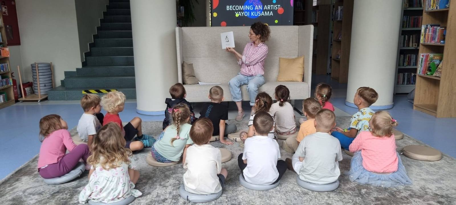 10 września grupa "Motylki" uczestniczyła w zajęciach w Biblioteka Publiczna im. ks. Jana Twardowskiego w Dzielnicy Praga-Północ zorganizowanych z okazji zbliżającego się "Dnia Kropki". Dzieci zostały zapoznane z treścią opowiadania "Kropka" autorstwa P. H. Reynolds oraz zaprezentowano im dzieła sztuki artystki Yayoi Kusamy. Na zakończenie "Motylki" wykonały prace plastyczne nawiązujące stylem do dzieł Y. Kusamy.