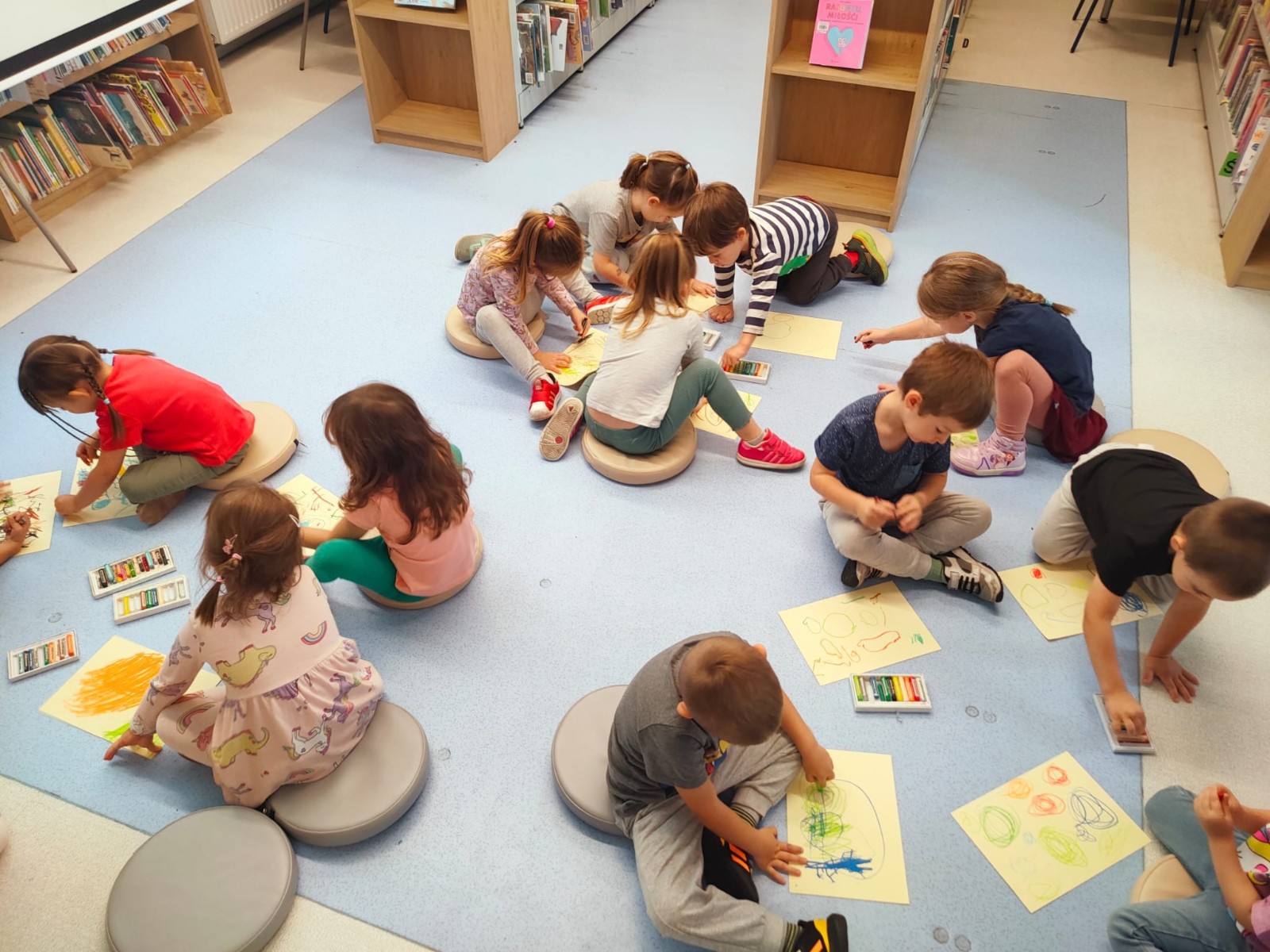 18 września dzieci z grupy "Słoneczka" uczestniczyły w warsztatach dydaktyczno-plastycznych w Biblioteka Publiczna im. ks. Jana Twardowskiego w Dzielnicy Praga-Północ. Podczas spotkania "Słoneczka" wzięły udział w różnorodnych aktywnościach, które łączyły elementy edukacji, ruchu, sztuki, literatury i zabawy. Zajęcia kończyło wykonanie przez dzieci pracy plastycznej, w której mogły zaprezentować swoje własne pomysły i emocje.