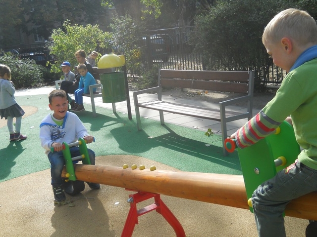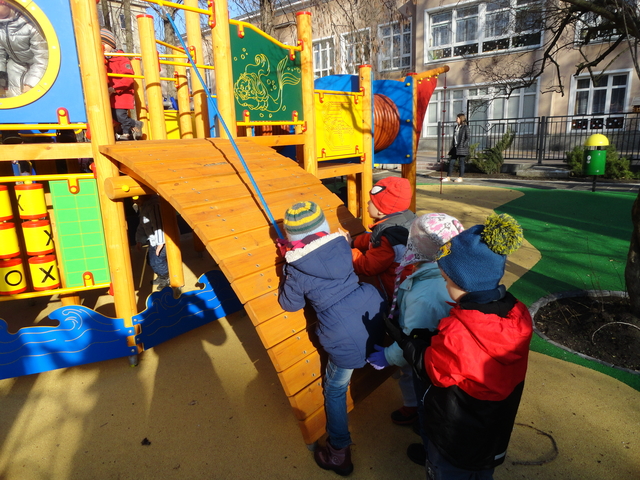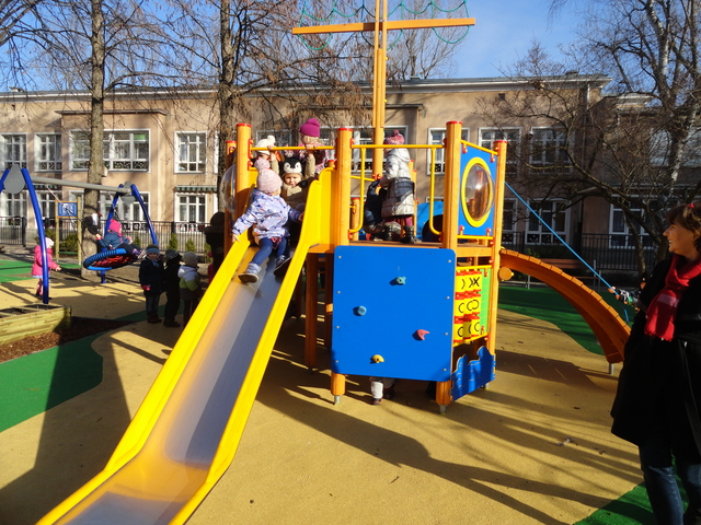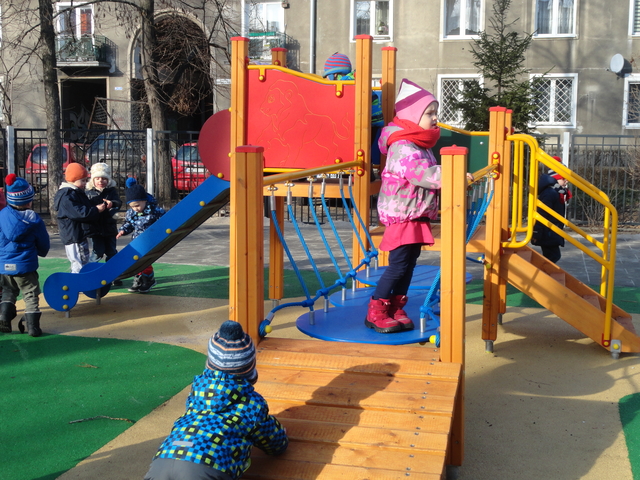 Z dumą możemy również zaprezentować nasz ogród przedszkolny, położony wśród zieleni, dającej w upalne dni cień, osłonięty od zgiełku ulic budynkami. Całość podzielona jest na dwie części, dla dzieci młodszych i starszych. Cały ogród wyposażony jest w różnego rodzaju sprzęt do zabaw.